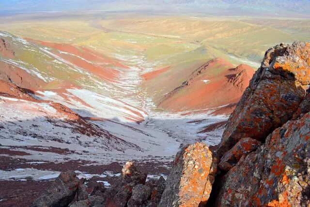 車窗外,卻是無與倫比的風景。車子沿著一條沙路深入大山,巍巍昆侖的幹峰萬壑如同披著銀灰色鎧甲的奔馬,隨著風起雲湧,滾滾向前。它不像南方的山,青翠常綠,透著靈氣和秀氣,也不像中原的山,眥鄰著一片片黃土高坡。昆侖的山,像戰士,像哥斯拉的獸脊,呈現岀原始的本色,宣泄著野性的光澤。