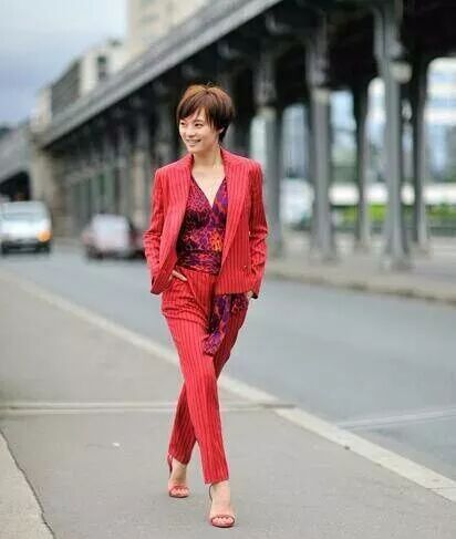紅色的西裝看起來很有活力,內搭的也是紅色的衣服,看著有些小性感了,短髮看著特別的精致很有個性的樣子了。