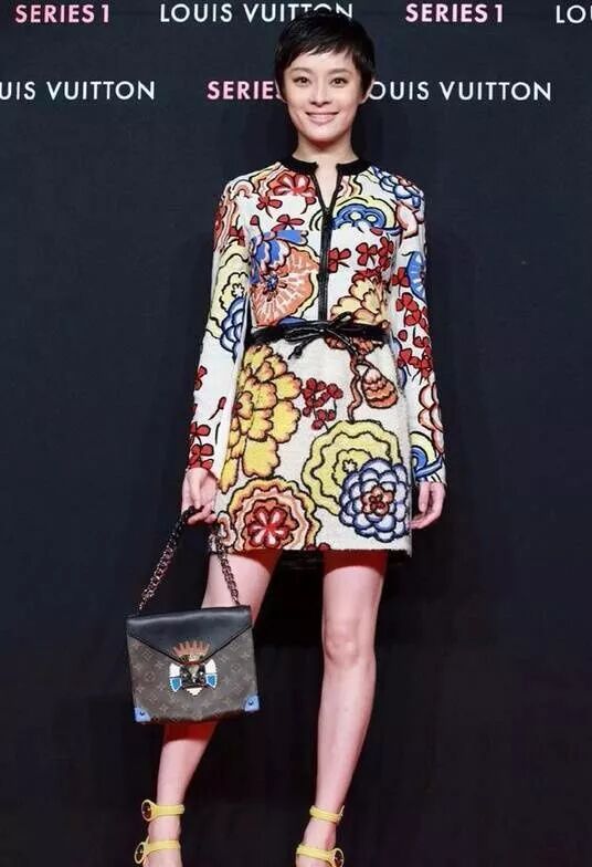 花紋的小短裙看著比較的有個性了,搭配了一個鏈條包看起來非常的有氣質,短髮和整體很搭配了,看著很舒服的樣子