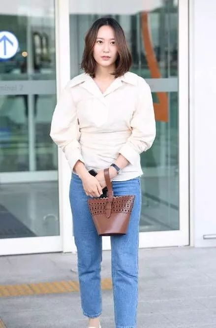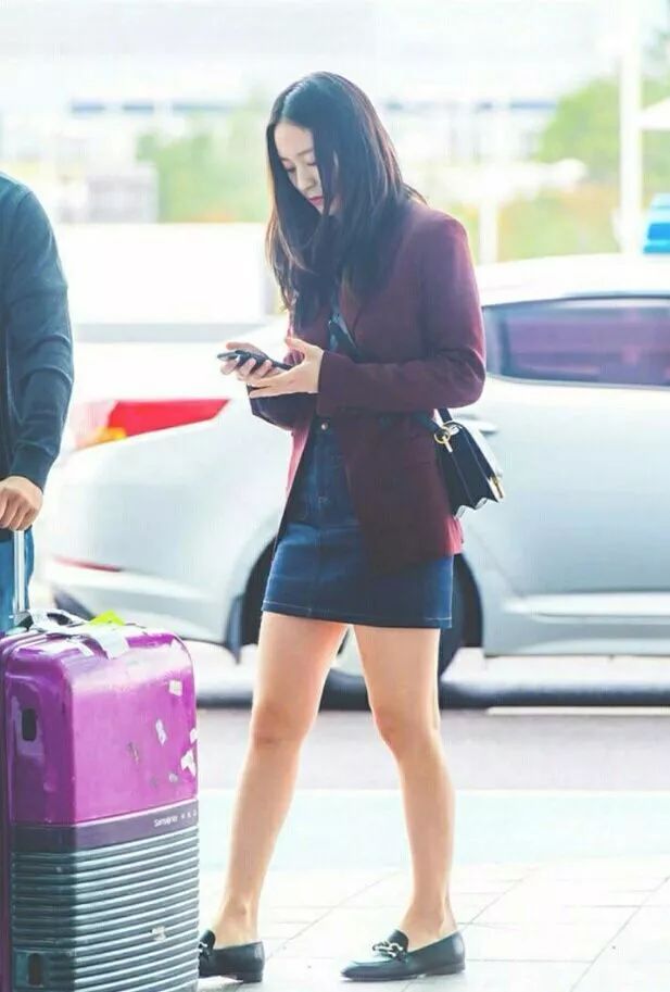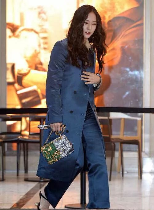 鄭秀晶一頭泡麵頭看起來亂糟糟的了,而且這樣看起來滿面油光的,一點精神都沒有了呢,穿起這件藍色的風衣後看著很臃腫