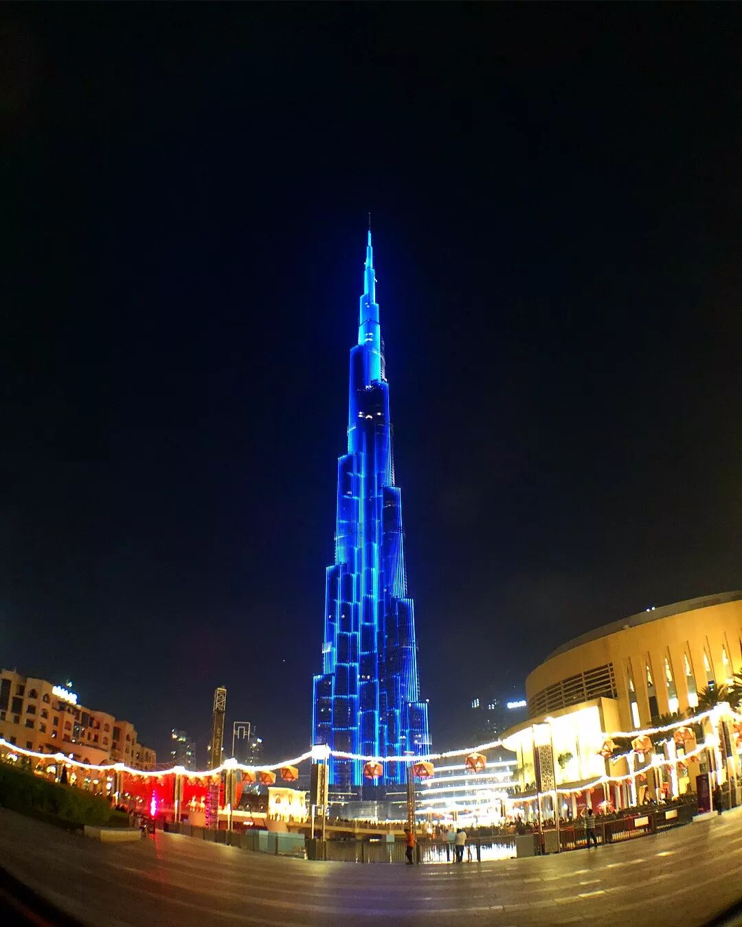 拍攝Tips:如何將哈利法塔拍完整?盡量讓相機鏡頭貼近地面,這樣拍出仰視全景的效果。