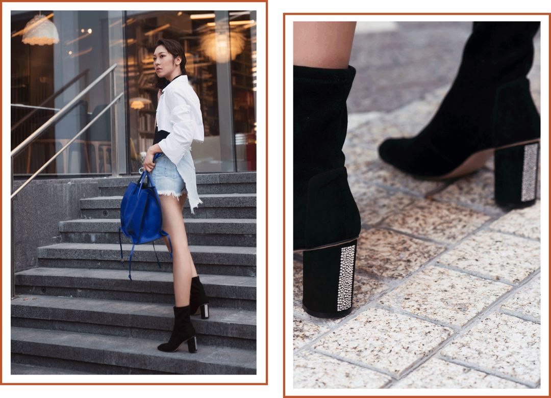 介紹了這麼多長靴,也想安利這對同樣百搭的短靴給你們,這一款的特色是鞋跟後有一排閃閃發光的透明小水晶。