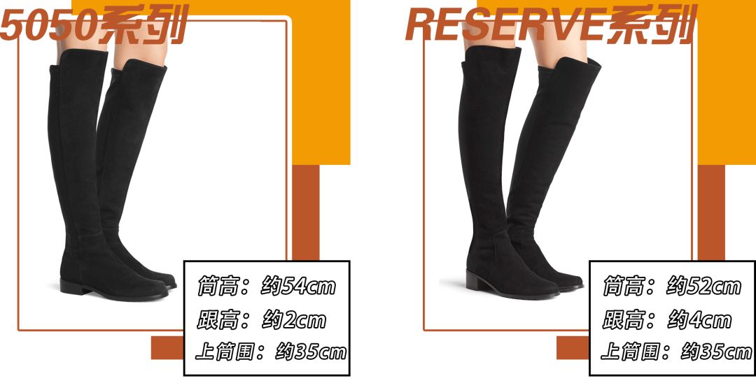 這兩款都有相似的筒高和鞋頭,跟都太算太高,5050的要矮一些,屬於穿再久也不容易累的高度,適合日常逛街外出穿。