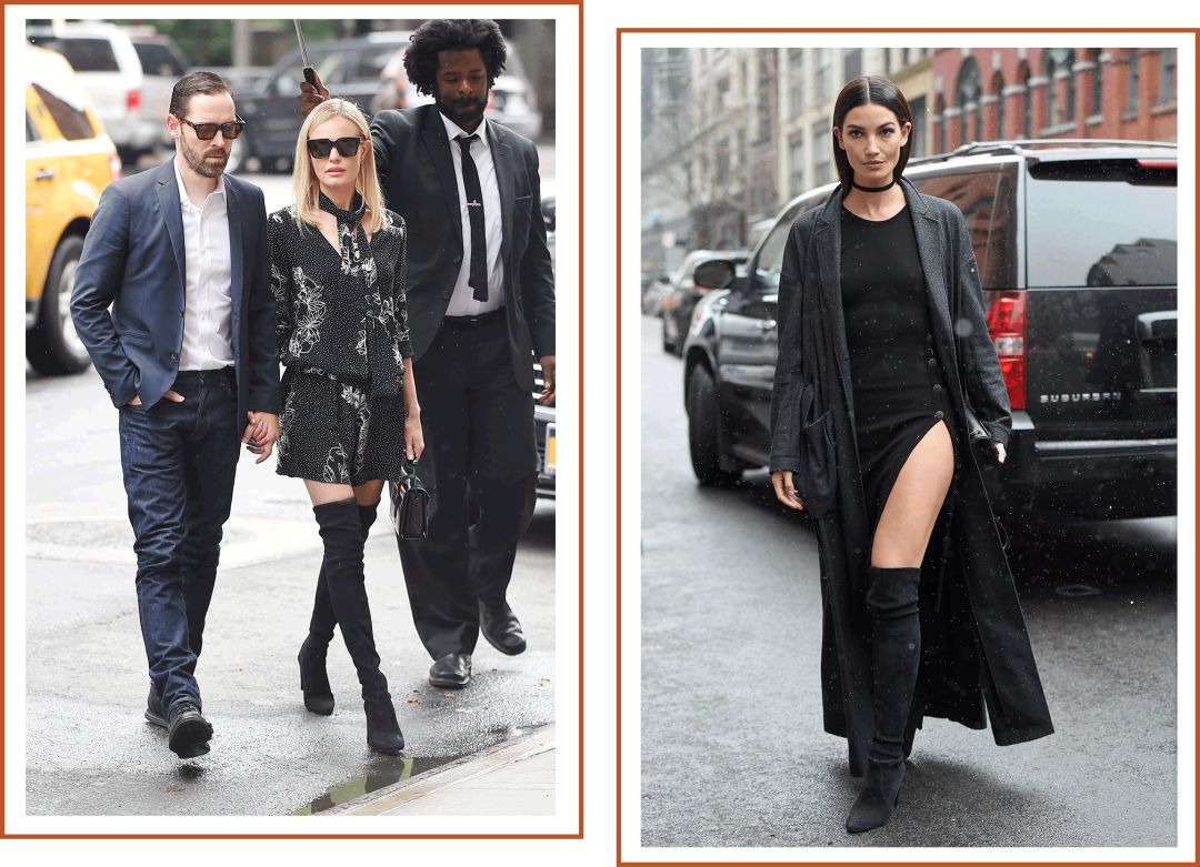 另外LAND系列的靴筒都是皮繩系帶的,自帶優雅氣息。超模KK就是這個款式的忠實粉絲,秋冬非常喜歡這種裹著長大衣配長靴的穿搭。