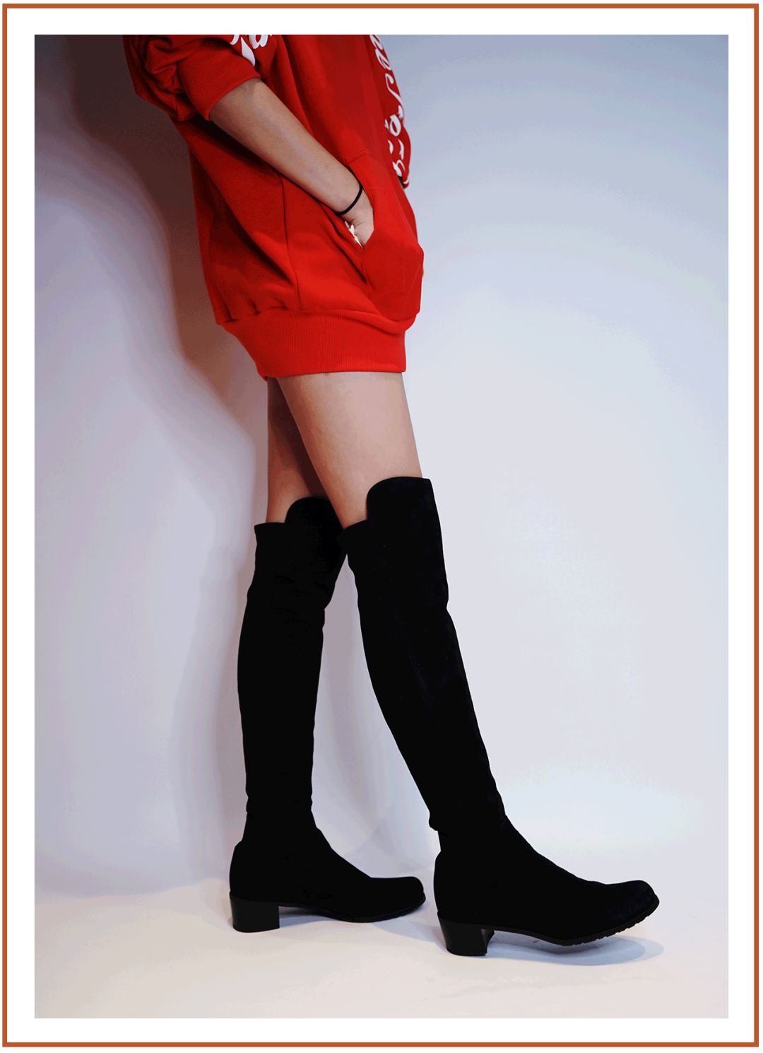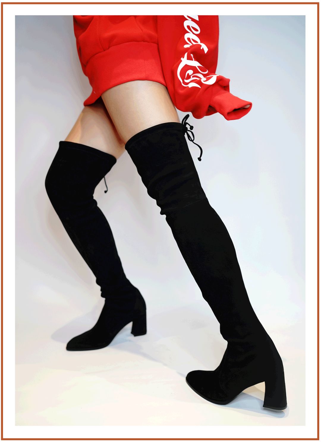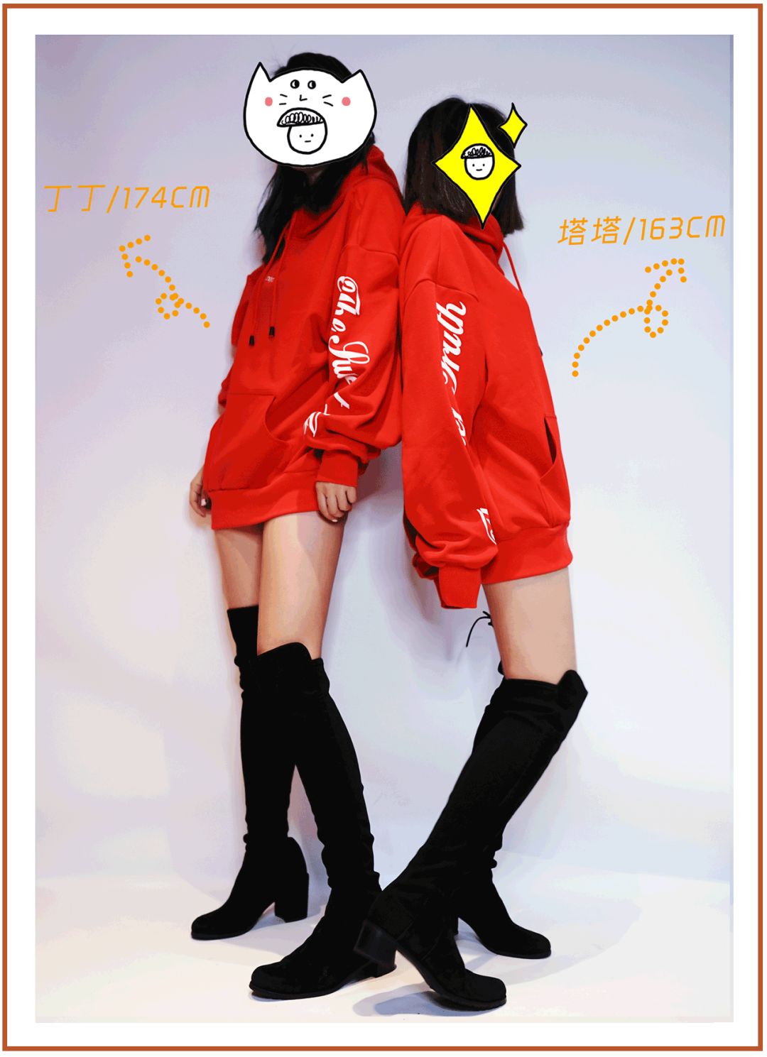 超高靴筒的LAND系列其實同樣適合小個子穿,編輯部最萌身高差的兩位小姐姐上腳圖,除了露腿面積有小小不同,肉眼可見的顯腿長完全不用吹