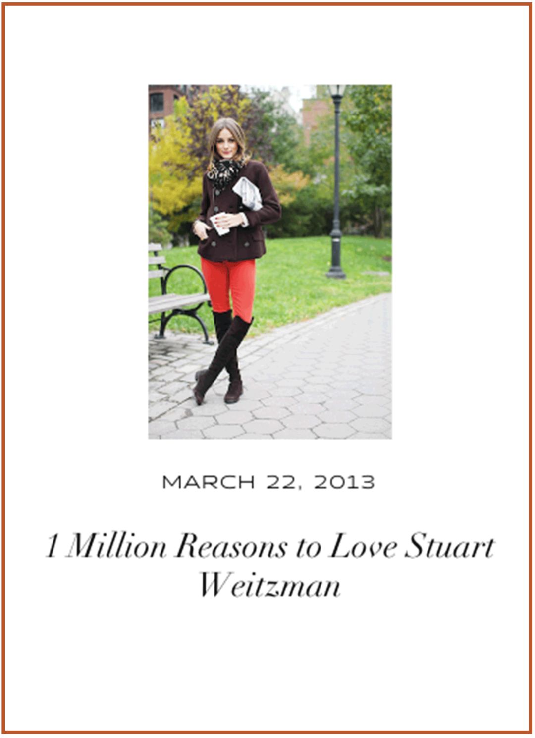 還在自己的個人博客上寫了篇「愛上STUART WEITZMAN的一百萬個理由」,算了算,已經有整整五年了。