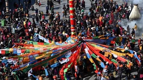 今年2月16號,剛好是藏歷新年和農歷春節重合的日子,除夕那天,藏族民眾家家戶戶要掛經幡、換香布、擺切瑪,以求來年吉祥如意。免費時段去正好趕上!