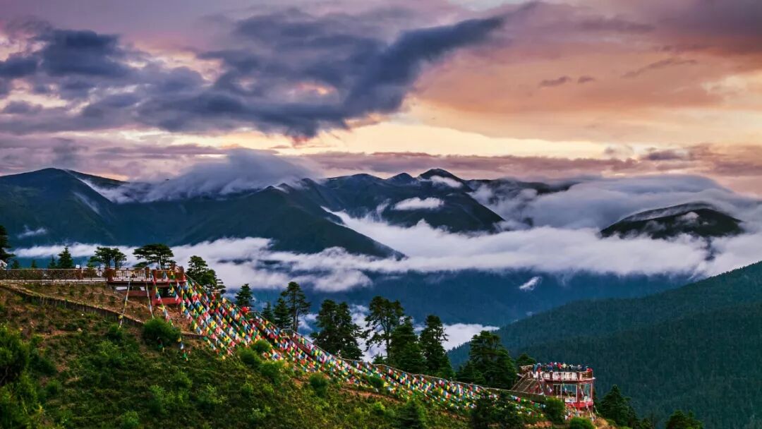 和朋友組隊來這里,一起散步悠閒,露營狂歡,靜看雲起雲落。而不遠處海拔7206米的寧金抗沙神山交相輝映就在腳下,壯觀至極。