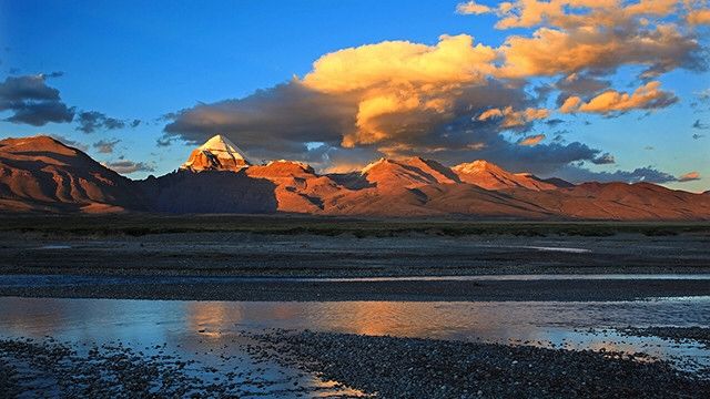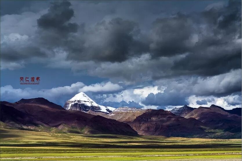 岡仁波齊峰的分布特別鮮明對稱,形狀就像一個圓冠金字塔,藏民們稱它像石磨的把手。遙遙一望,強大的震撼感,讓你不得不感嘆大自然的鬼斧神工!