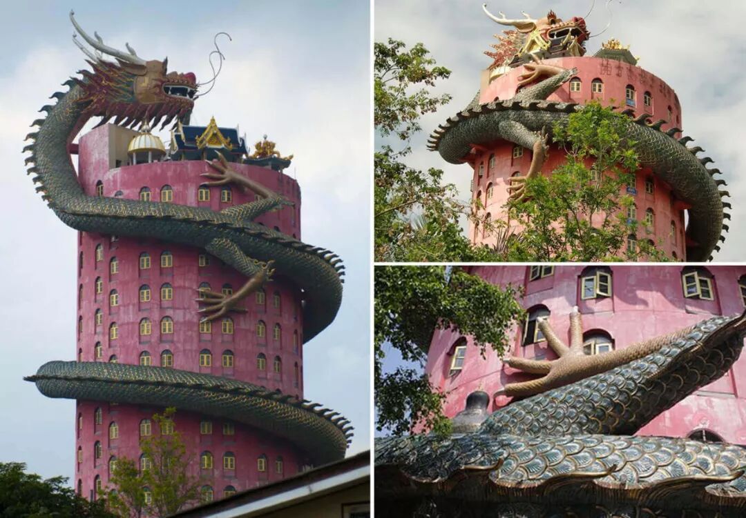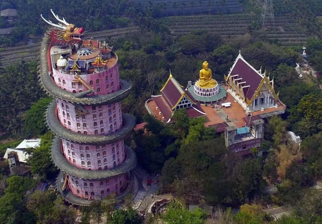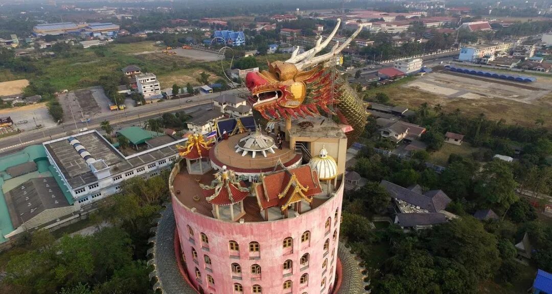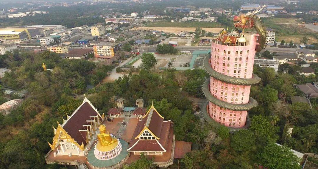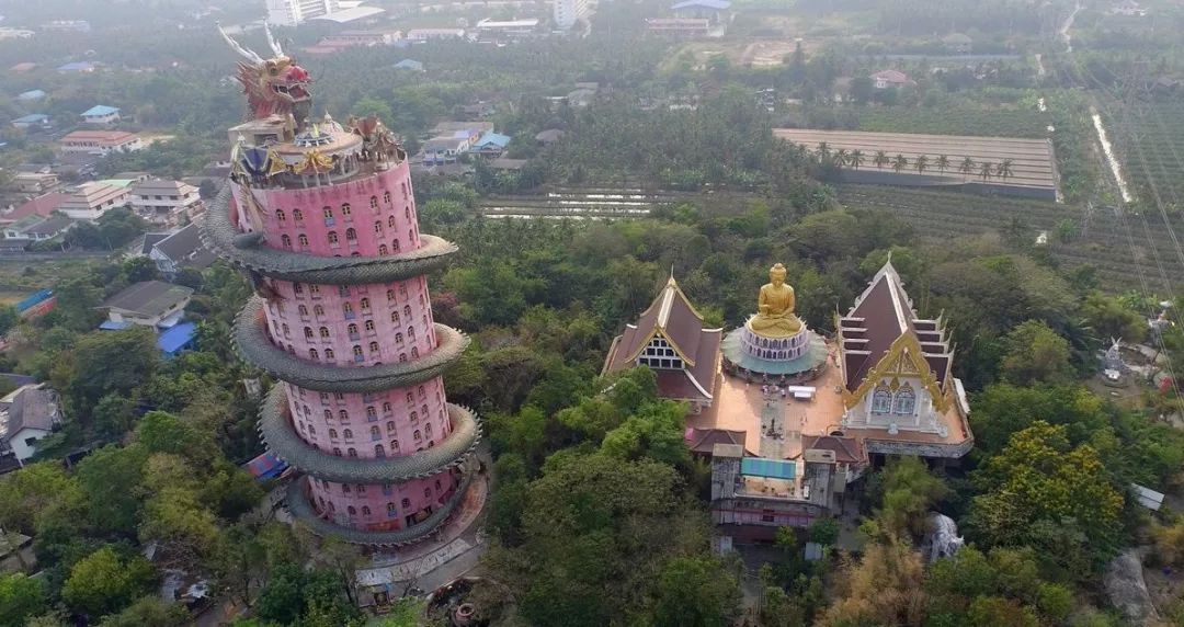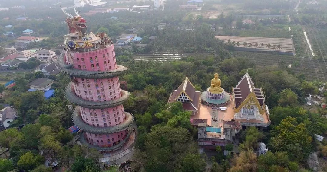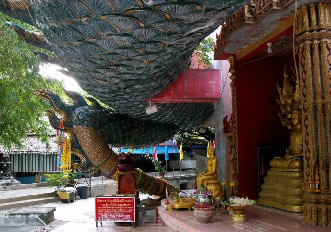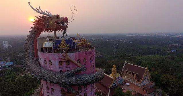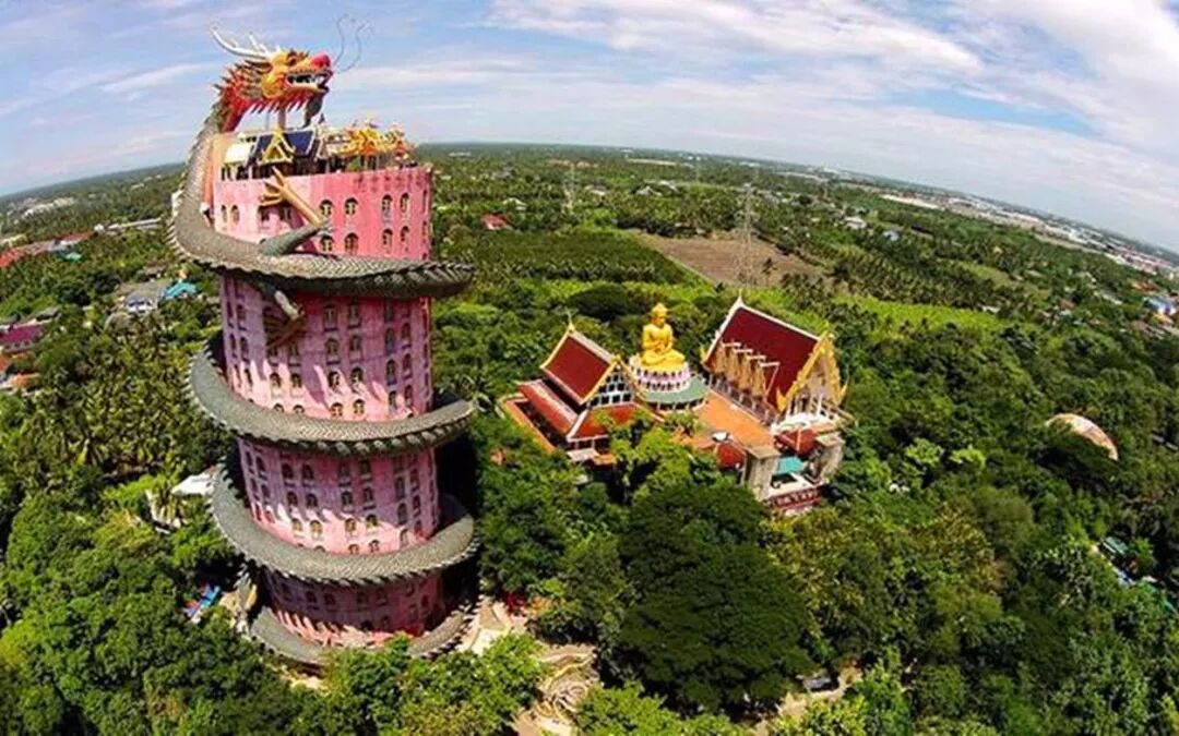 泰國是佛教國家,因此最不缺的就是寺廟了,僅曼谷一座城市就有幾百座寺廟,更不要說泰國各地的寺廟了。那些位於民間的寺廟突破了城市土地的限制,可以更加的霸氣和威武,比如說在佛統府桑派區就有一個霸氣威武的龍廟。