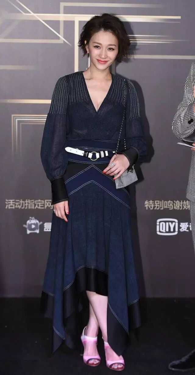 深v領口,讓李小冉洋氣十足,同時條紋款式的設計,更加迷人,優雅的藍色,讓李小冉盡顯高端大氣,穿出迷人氣質。