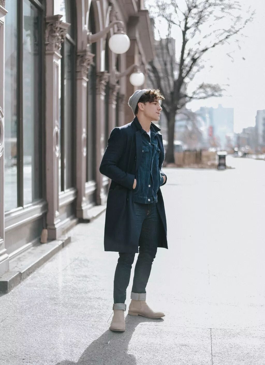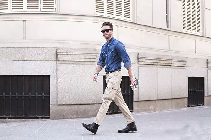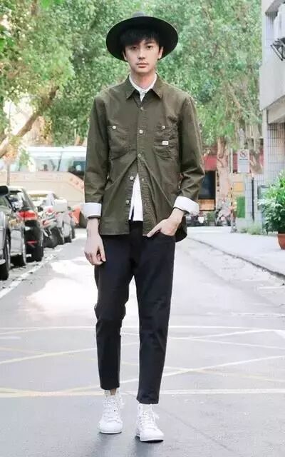 入門選高幫鞋,尤其是腿不夠長的男生,建議選擇與褲裝顏色一樣(至少是同一系列,色差不大)的鞋子。這樣能保障在視覺上的延伸性。拉長腿部線條。