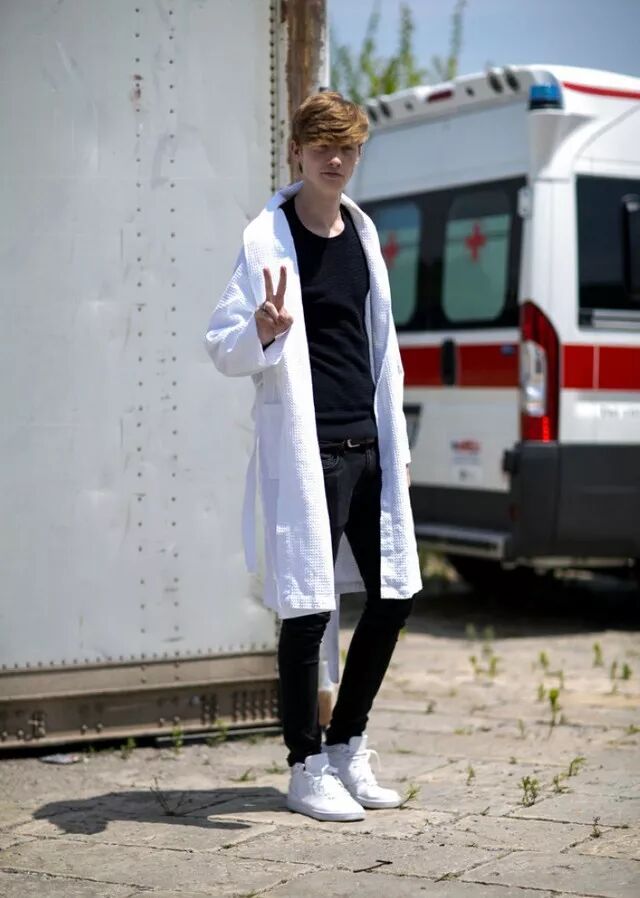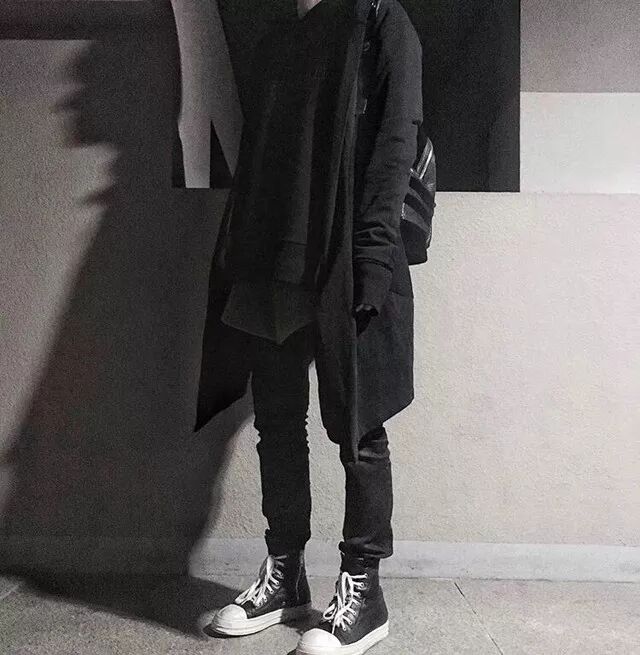 常見高幫運動鞋,穿上以後會顯得整個人更年輕陽光,有活力了。但如果All black搭配一雙黑色高幫,系帶鞋,可就既酷又狂野了。