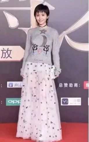 王子文在紗裙里面應該是穿了一雙很高的鞋子,這樣使她在視覺效果比較好,看上去比較高。但是她的短髮和這一身衣服都不是很搭。
