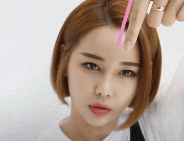 Step3:將剛剛抓起的這部分頭髮用夾板夾成內扣,用大拇指和食指將此部分頭髮髮尾向相反方向捏出弧度,更能修飾臉型。