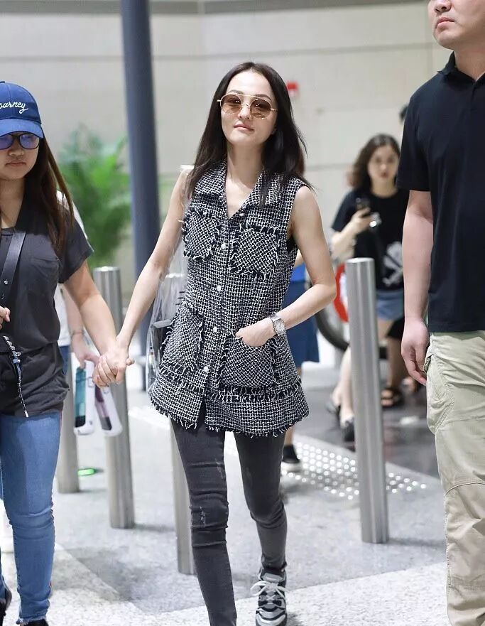 她穿著一件無袖馬甲,這樣襯得身材更加纖瘦了, 特別是這手臂,跟旁邊的人比起來,真是只有一半粗呢!