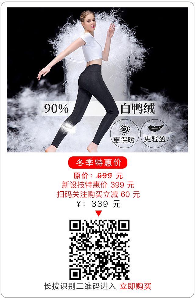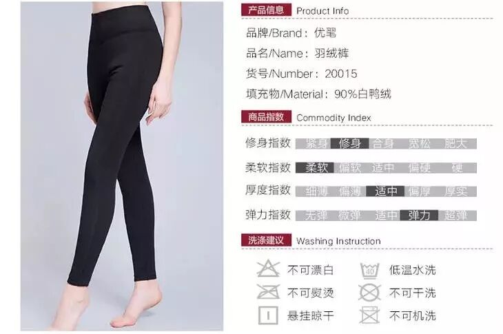 其實很簡單,現在的最新科技,已經可以把羽絨剪裁得很勻很薄了,而且還很有彈性哦~~~~優毣(mù)新型科技剪裁羽絨秋褲,拒絕任何臃腫的感覺,高彈透氣,還修身塑形顯瘦。。。