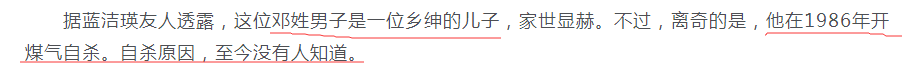 除此之外她的感情也一直很坎坷,她的第一任男友姓鄧,可是卻在和她戀愛期間開煤氣自殺了,原因沒人知道。