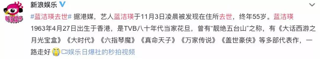11月3號凌晨,55歲的藍潔瑛被朋友發現在家里去世。