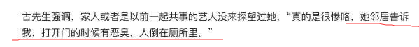 如果不是朋友來看望,一個人住的她又不知道多久才能被發現死去的事。