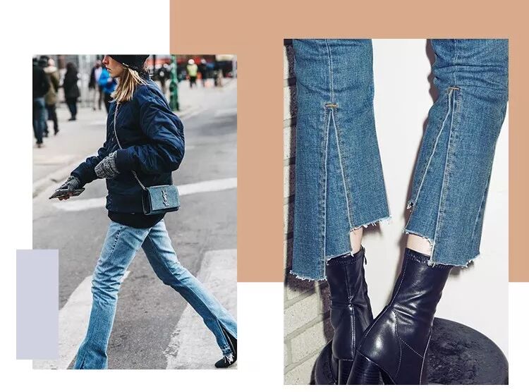 將喇叭褲的邊故意磨破營造凌亂感