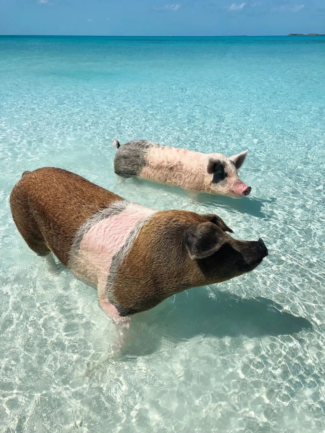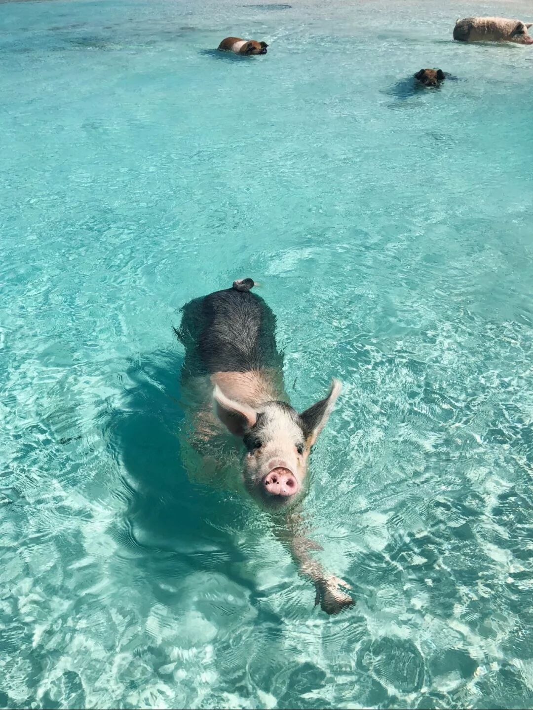 豬豬島是一個非常安全的無人島,陸上有充沛的天然泉水,而且因為有鄰近島的保護,基本不會受到風暴或是巨浪的襲擊。它們每天的生活就是在水中嬉戲,結伴遊泳,在沙灘上午睡、曬日光浴,簡直是世界上最幸福的豬豬了吧!