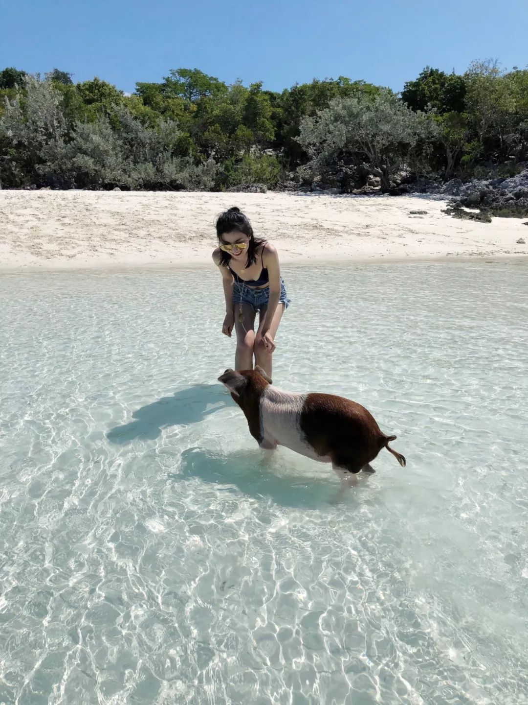 由於這些豬豬樣子可愛,又不怕生,當有遊客乘著觀光船靠近時,膽大的小豬便會扒著船幫討要食物。久而久之豬豬遊泳嬉戲的視頻傳到了網上,它們便火了起來,成為吸引全世界目光的「網紅」。聽說還有電影製作人打算為它們拍攝紀錄片~