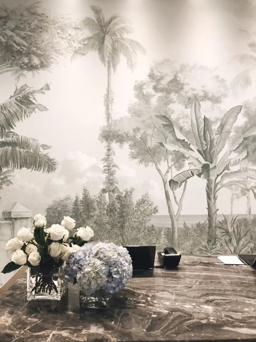 開闊的公共空間十分cozy。一張藤編沙發,一座大理石壁爐,一面熱帶植物的牆紙,都足以把度假的感覺表現得低調典雅。