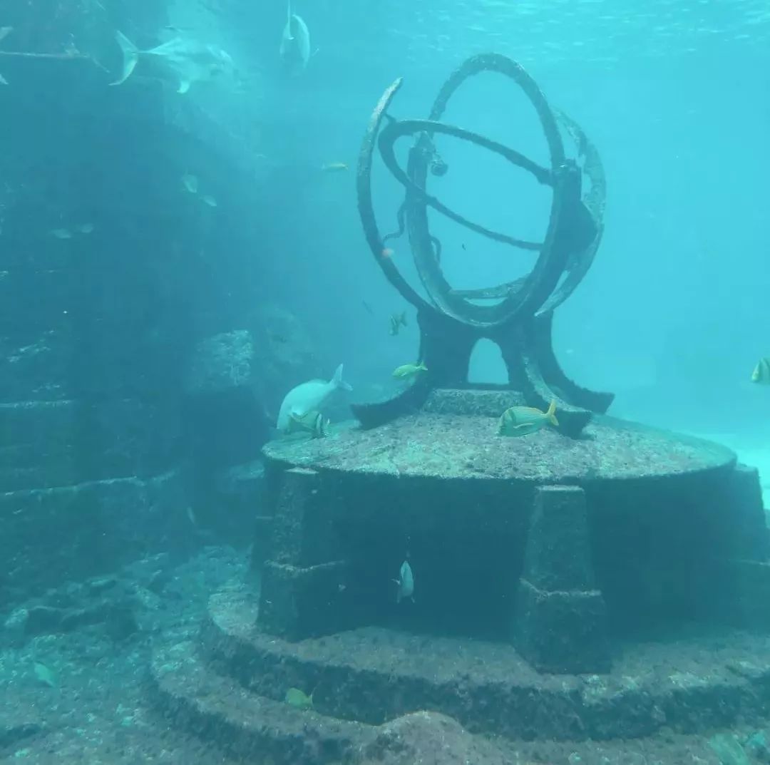 全球唯三的亞特蘭蒂斯酒店位於杜拜、三亞和天堂島,為了重現傳說中的文明古國亞特蘭蒂斯的風采,酒店各處的造景都非常有fiu。尤其是地下巨大的水族箱,像是還原了杜拜酒店的縮小版哦~