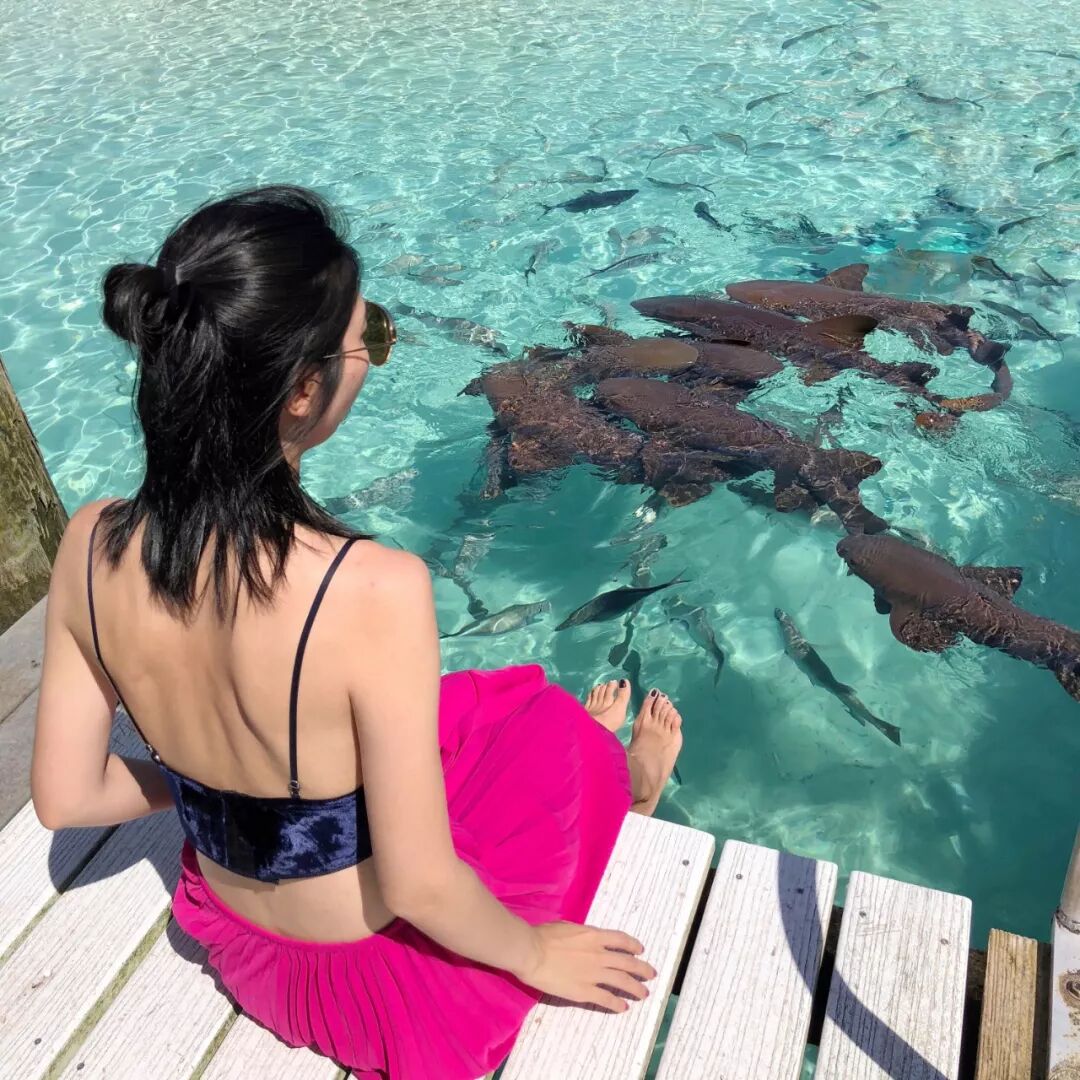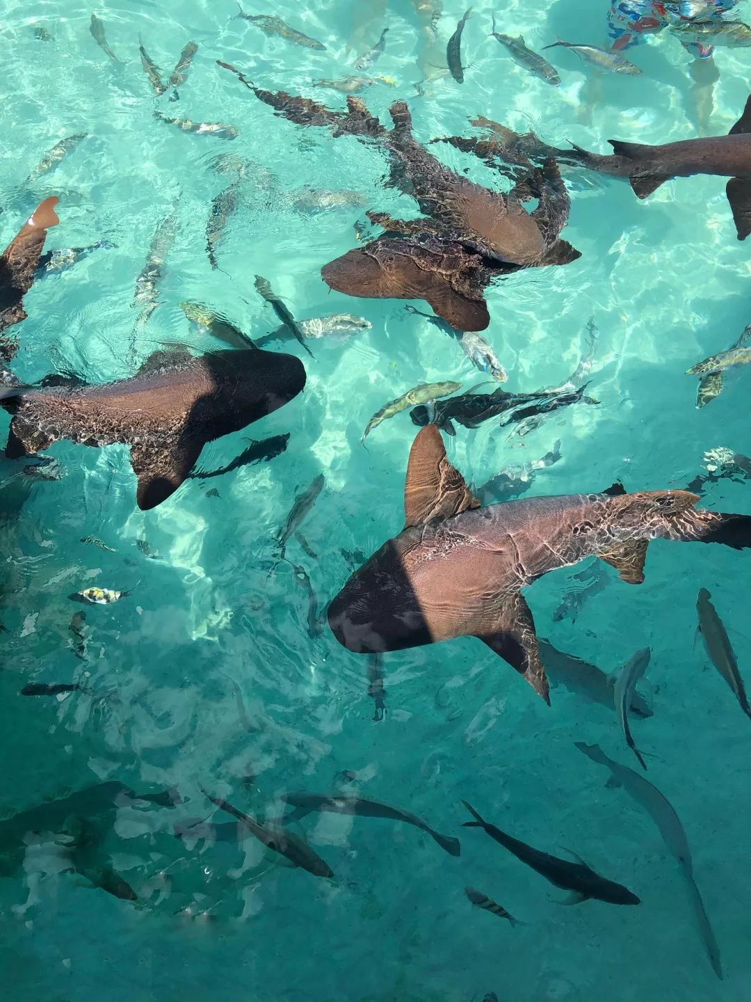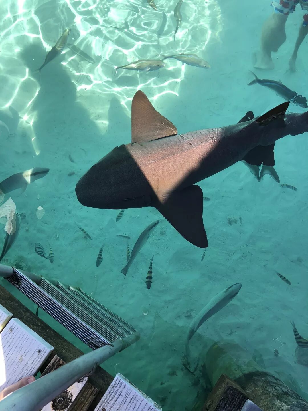 Compass Bay是Exuma Islands上的私人島嶼,需要單獨交錢就可以登島遊玩。我覺得還是蠻值得一看的,因為你可以零距離下海去跟鯊魚遊泳哦~蔚藍的海水清澈見底,在岸上就能非常清楚地看到鯊魚和其他魚群遊來遊去的,非常優遊自在。