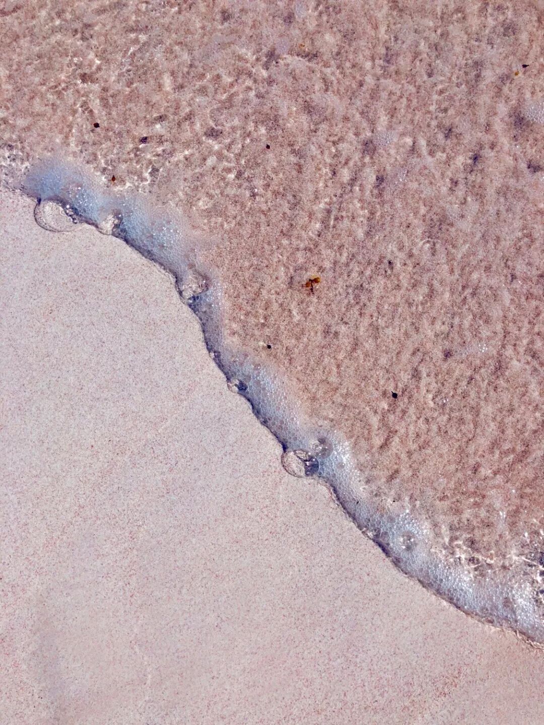 雖然沙灘並沒有想像中的艷麗,但是遠看上去確實是一大片粉粉的顏色。隨著光線的方向和海水流動的過程,色彩都會產生變化,十分動人。仔細觀察,能看到有種珊瑚粉末狀的細沙像是浮在沙灘上。
