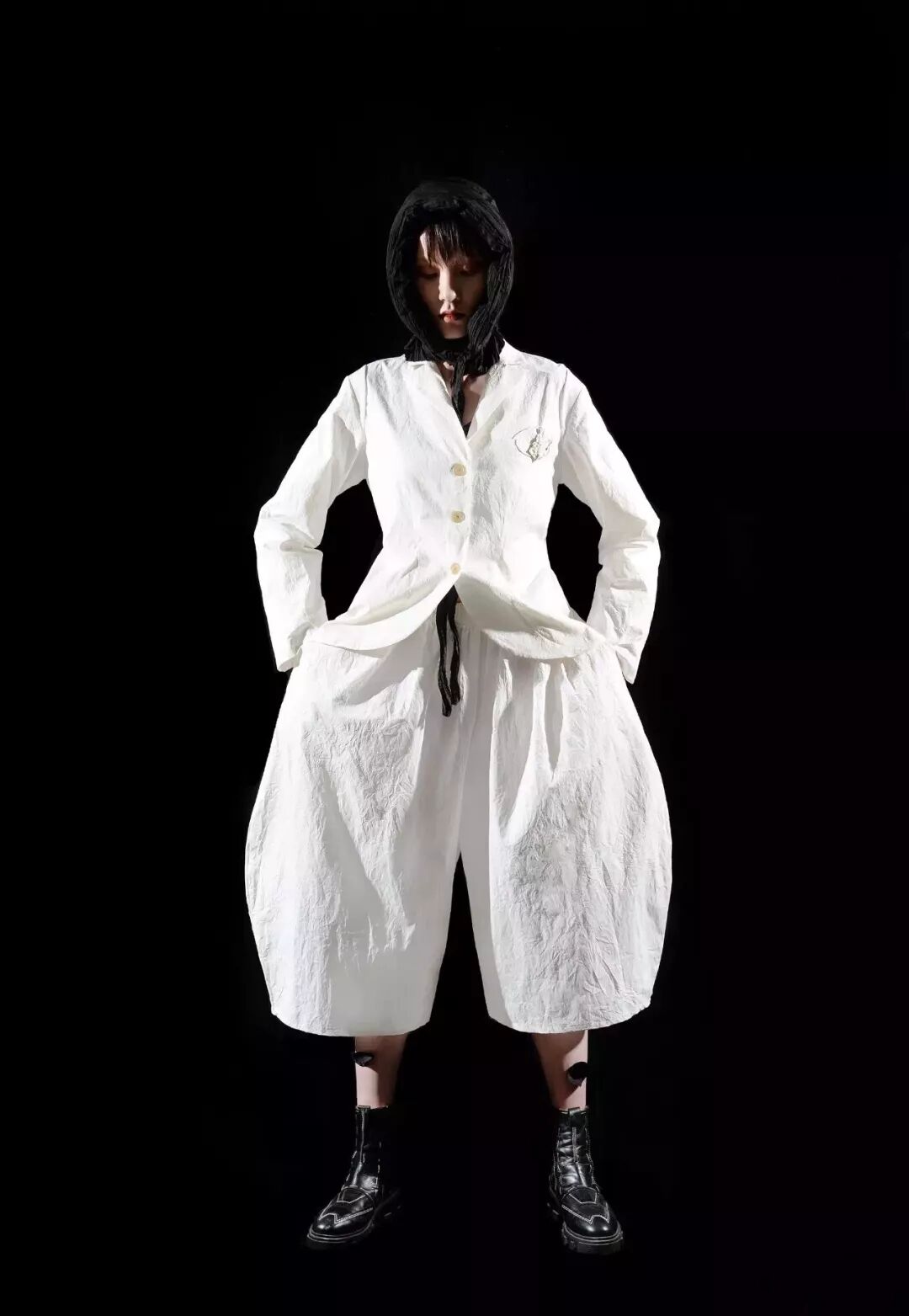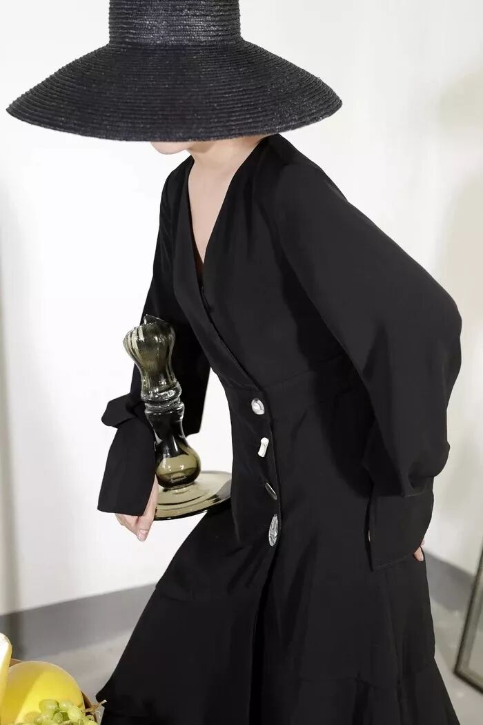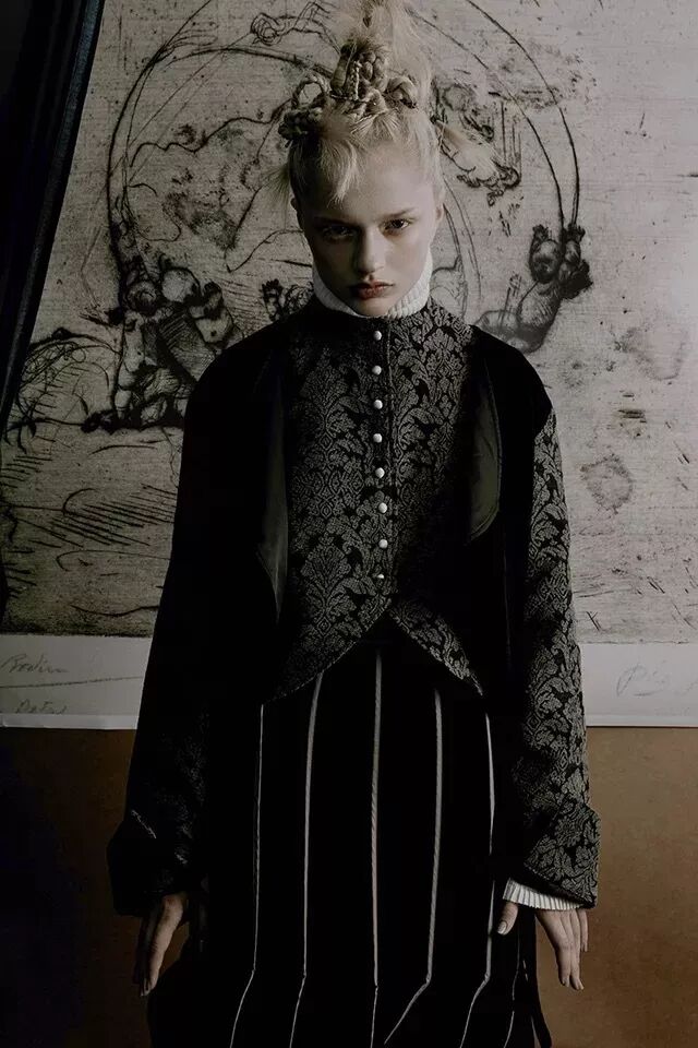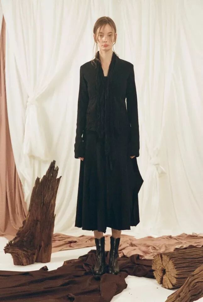 可謂暗黑與清純並存的獨特品牌之一了。仍是以黑白色調為主打,流暢的垂墜感,細膩貼服的紗衣,宮廷式的泡泡袖,讓人聯想到美劇《美國恐怖故事》里的女巫們。