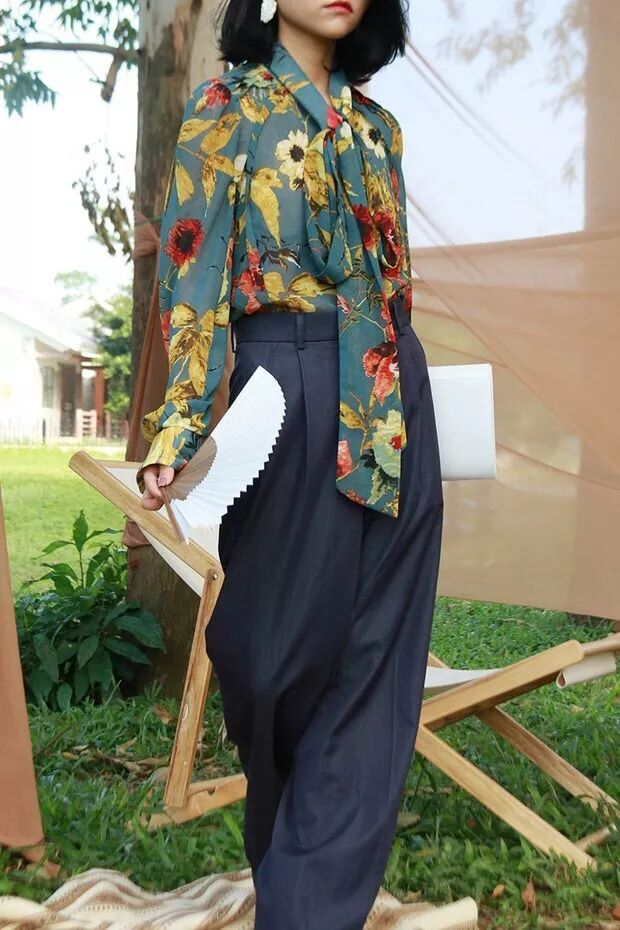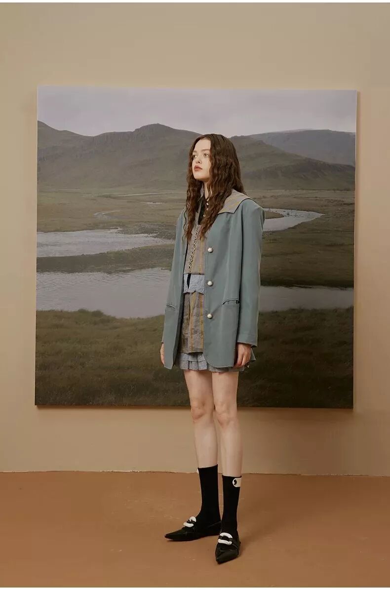 看到店名,再聯合著Lookbook,就能想像到在公園野餐的情景了。抽象的山水畫印花、藍棕色印花、復古玫瑰褶皺、學院風拼接西裝外套,復古與優雅都兼具了,非常乾淨舒服。