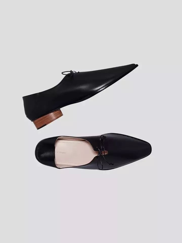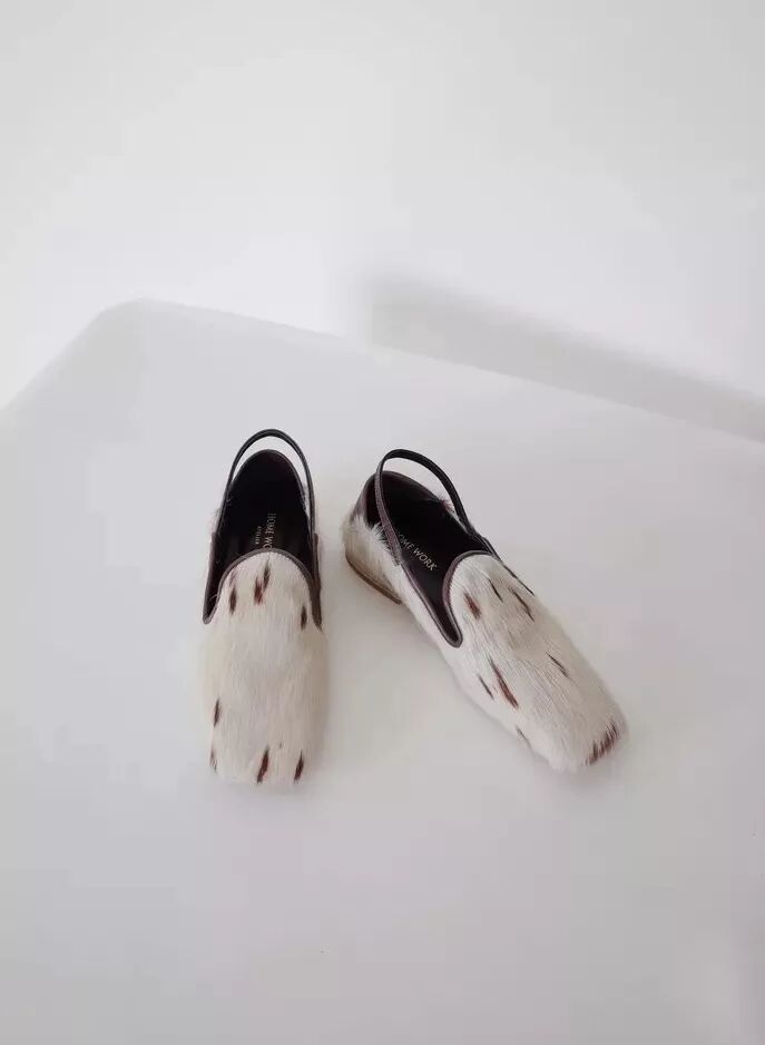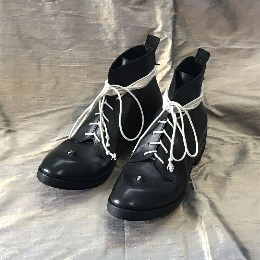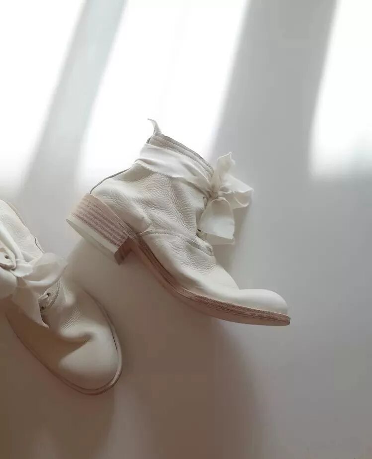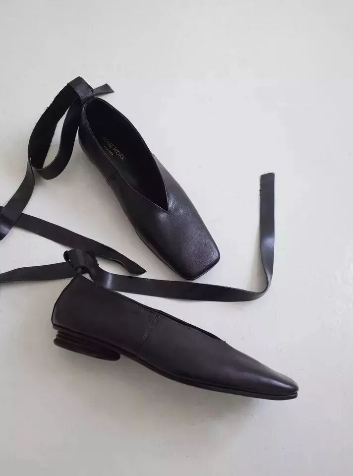 HOME WORK ATELIER家的鞋子走的是近年來十分流行的性冷淡風,顏色集中在百搭的黑白,設計感則重點體現在款式上——微翹的鞋頭、各式綁帶是它家的兩大特色。在搭配上的可塑性極強:淑女風、中性風、闊腿褲、半裙都能駕馭。