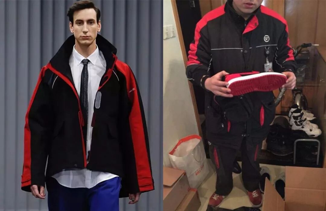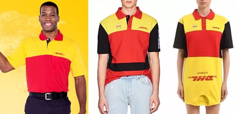 左一:真.DHL快遞工服 右:Vetements借鑒款