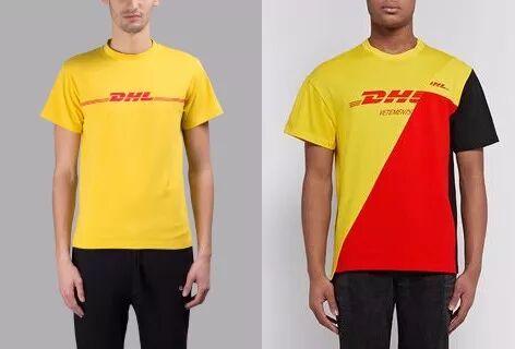 Vetements去年就有出過幾款快遞感很強的T恤,無論是顏色、款式還是胸前的印花字符,全都是借鑒的著名郵遞物流DHL模樣,看外觀,普通人也是傻傻分不清誰真誰假~
