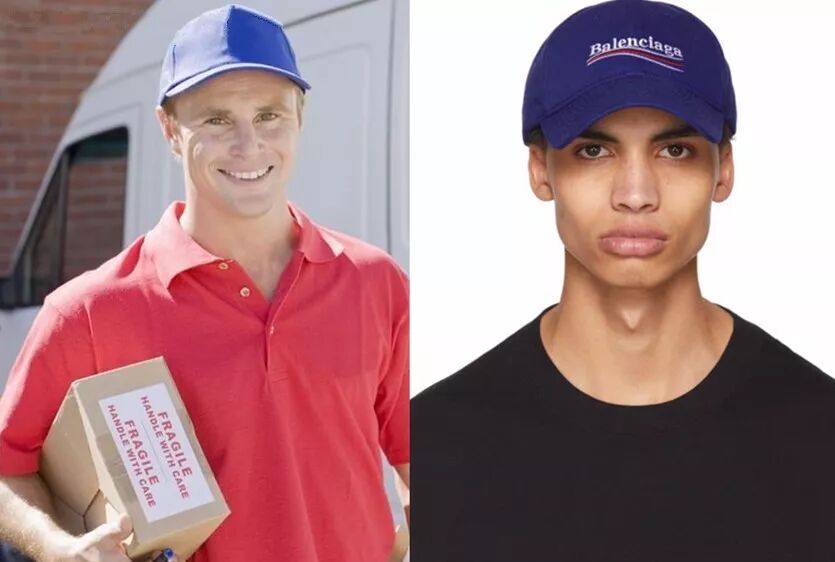 比如入門級的會戴個鴨舌帽。作為最愛走「快遞風」的巴黎世家,當然也有出過類似單品↓