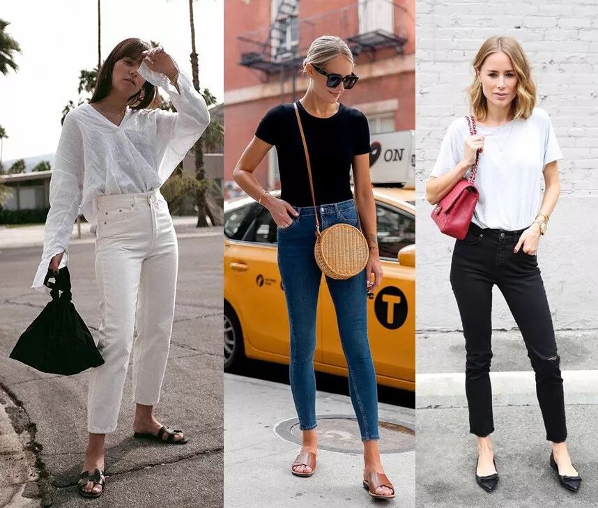 要想利用平底鞋來延伸腿長,各種尖頭flats就應該是你的首選。比起最右的圓頭款,是不是左邊兩圖的尖頭設計更有延伸感了?