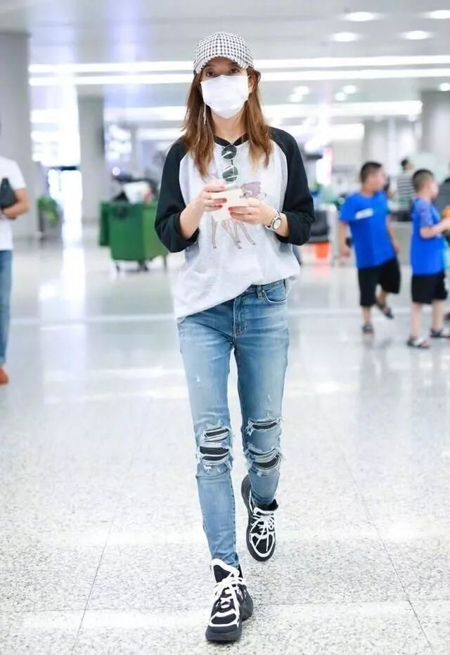 破洞牛仔褲,機場里成為新寵,同時搭配一件簡約毛衣,整個人的時尚感就出來了,看起來更加迷人。