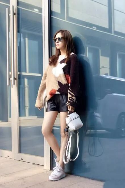 趙薇長腿吸睛,身穿超短皮褲,露出修長美腿,這腿又白又直,簡直讓大家羨慕,同時毛衣的簡約風格,反倒洋氣十足。