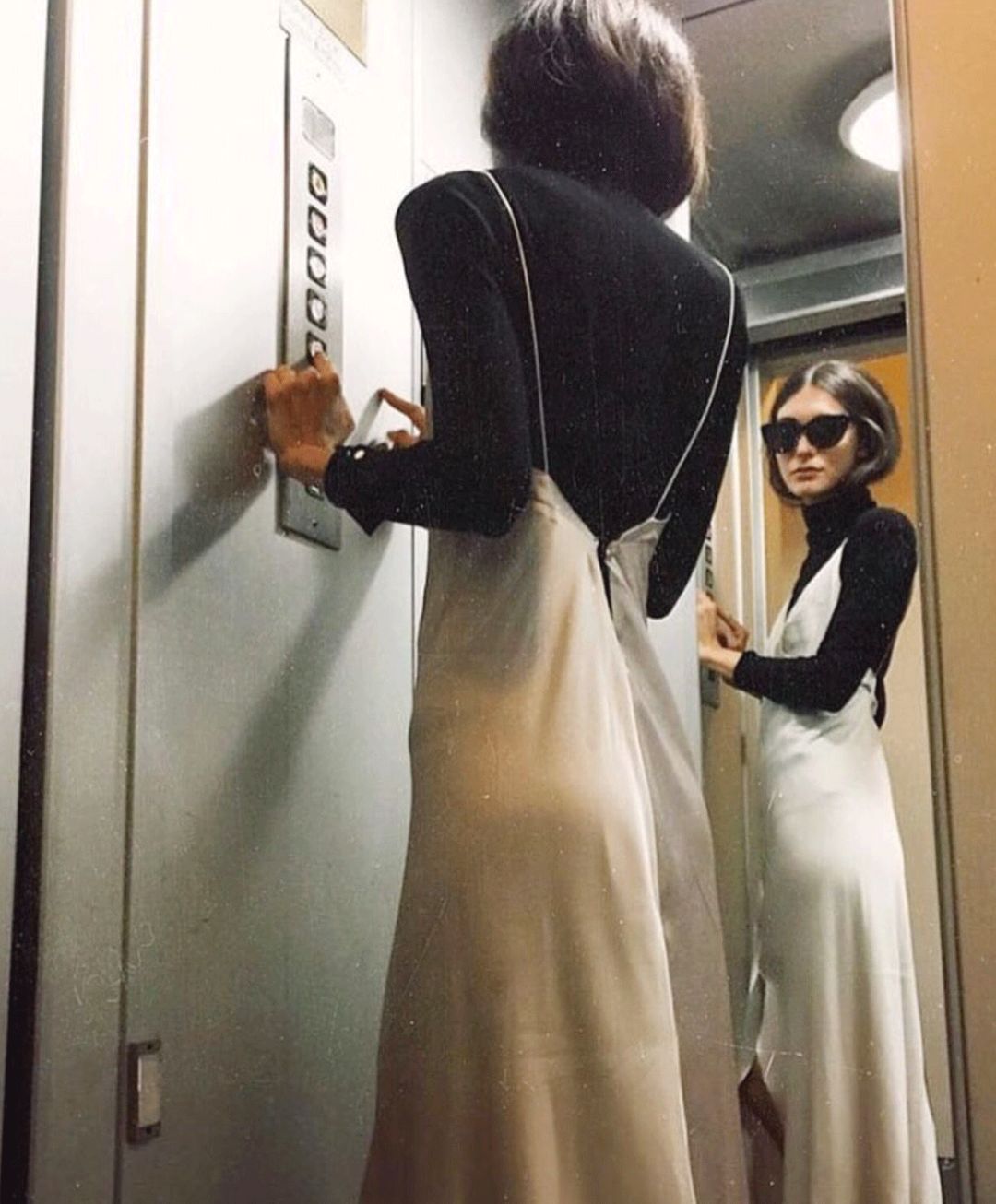 任何不敢裸體單穿,或者不知道怎麼穿的衣裳,比如絲質吊帶裙。有了它,迎來了第二春。