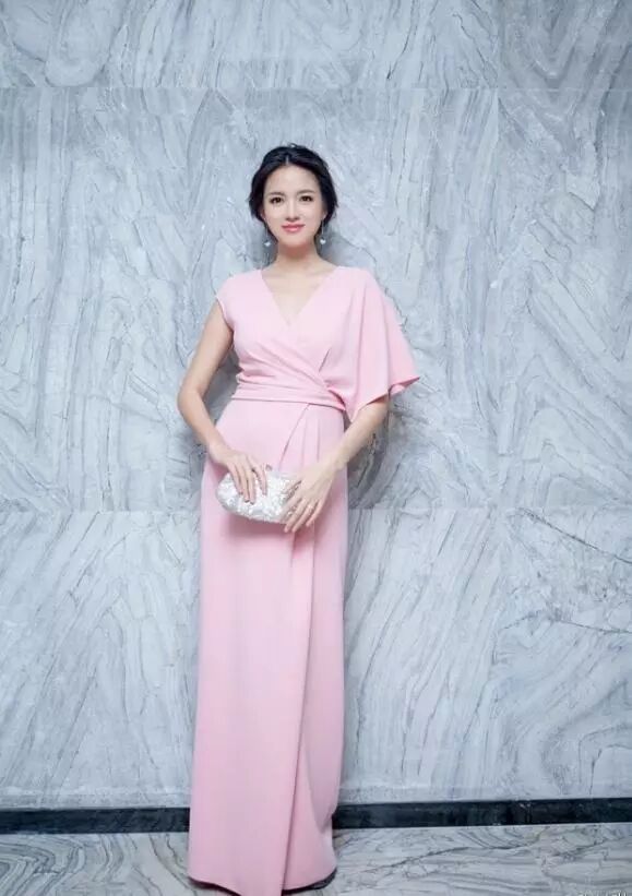 金色裙子修身的設計,將張梓琳的好身材完美的展現出來,端莊又不失優雅氣質。