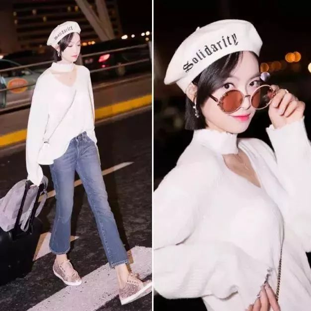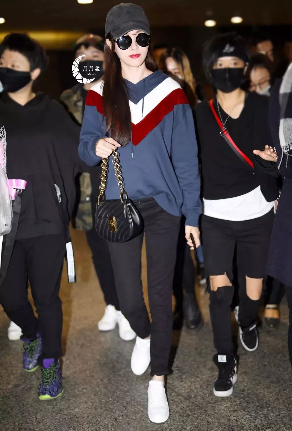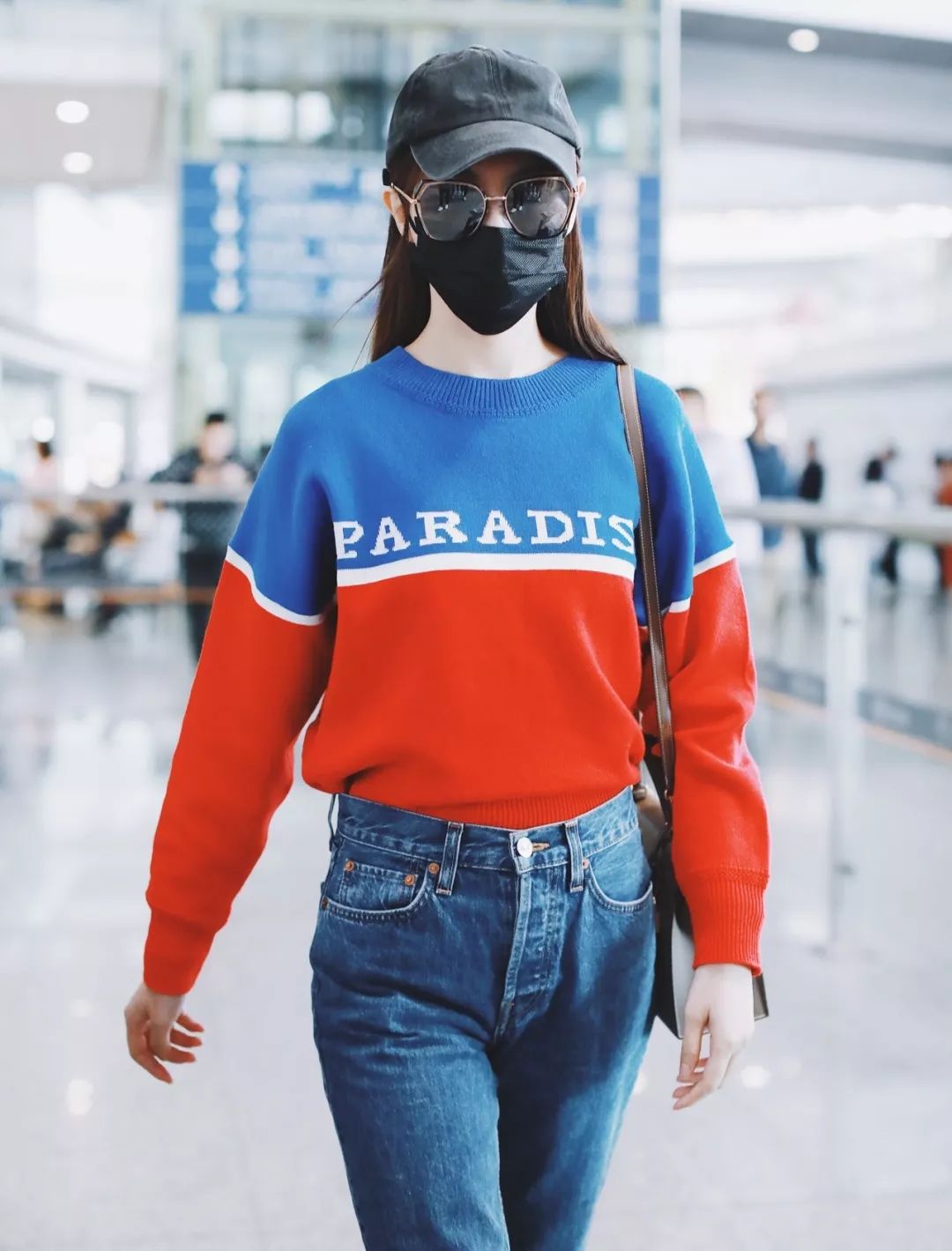 除了裙子,褲子同樣重要,糖糖就經常褲子+毛衣出現在機場,簡單隨性,紅藍色交織看上去明亮和諧!