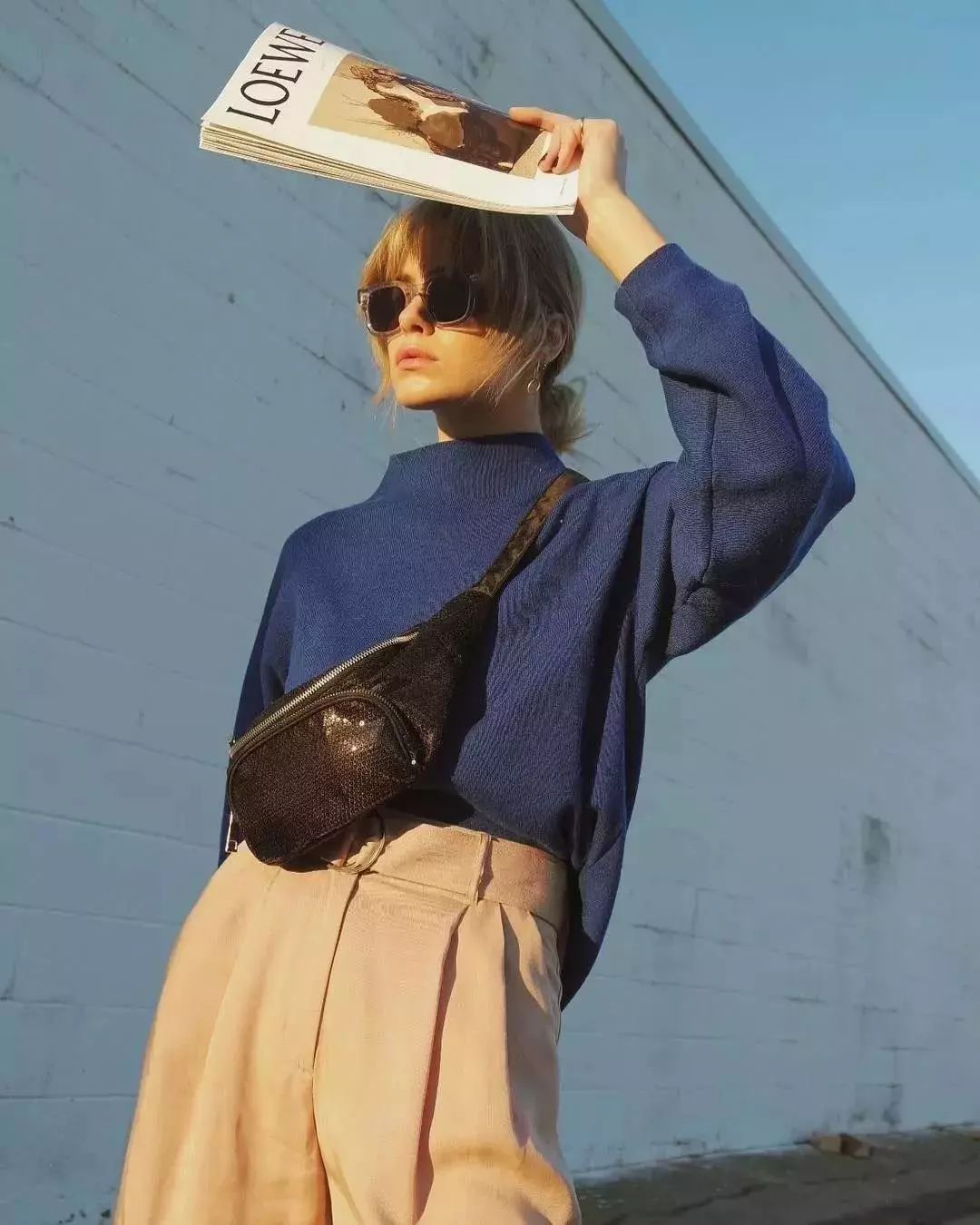 一些寬鬆的毛衣可以用皮帶打造高腰,畢竟內搭想要顯高的話,還是得高腰!