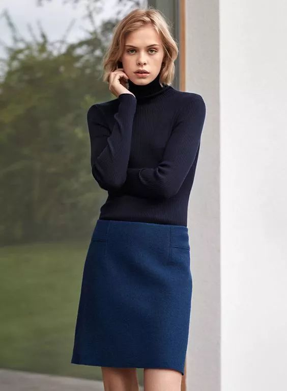 這種裙身加毛衣都是緊身,對微胖的美眉來說不是很友好,但看起來有點冷艷的感覺!