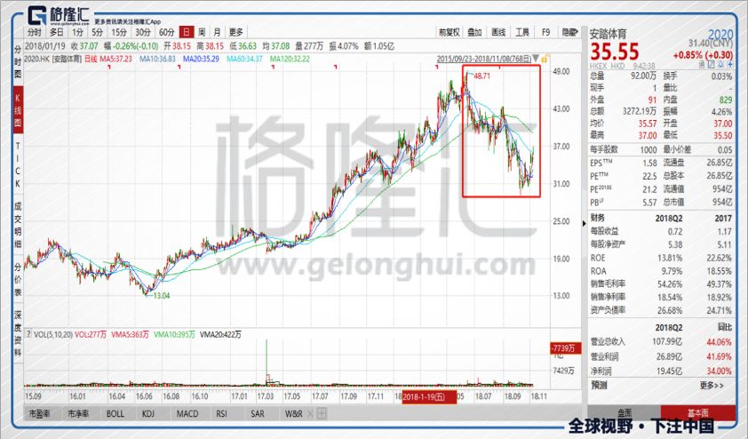 安踏在這一波下跌之前,過去的估值基本都維持在30倍以上的PE,最高的時候去到35倍。