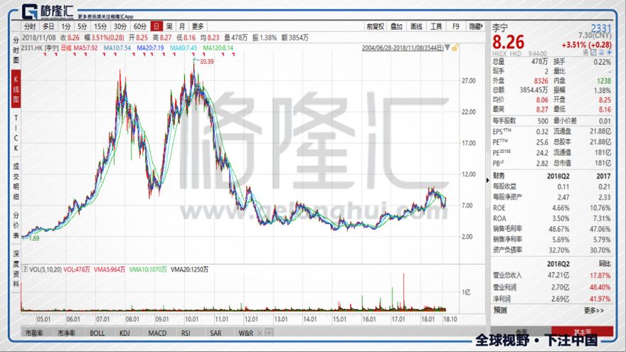 李寧的股價始終未能回到高峰。