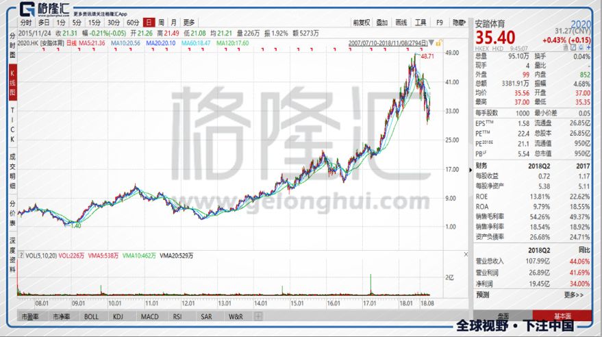 未來,安踏還將收購Amer sports,如果收購成功,安踏的品牌版圖將會進一步擴大。現在安踏的估值已經跌回了大漲前的位置,不到20倍的PE。