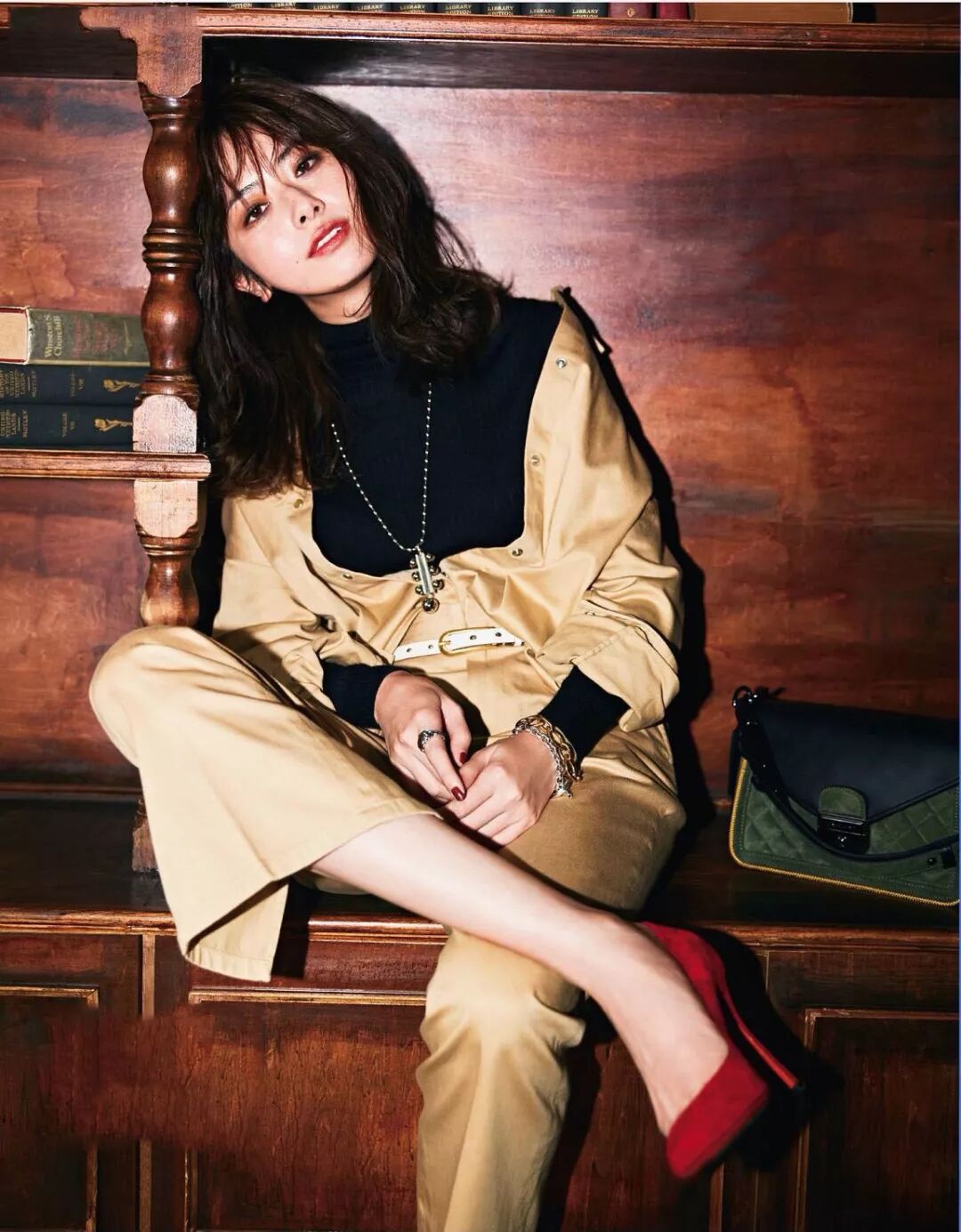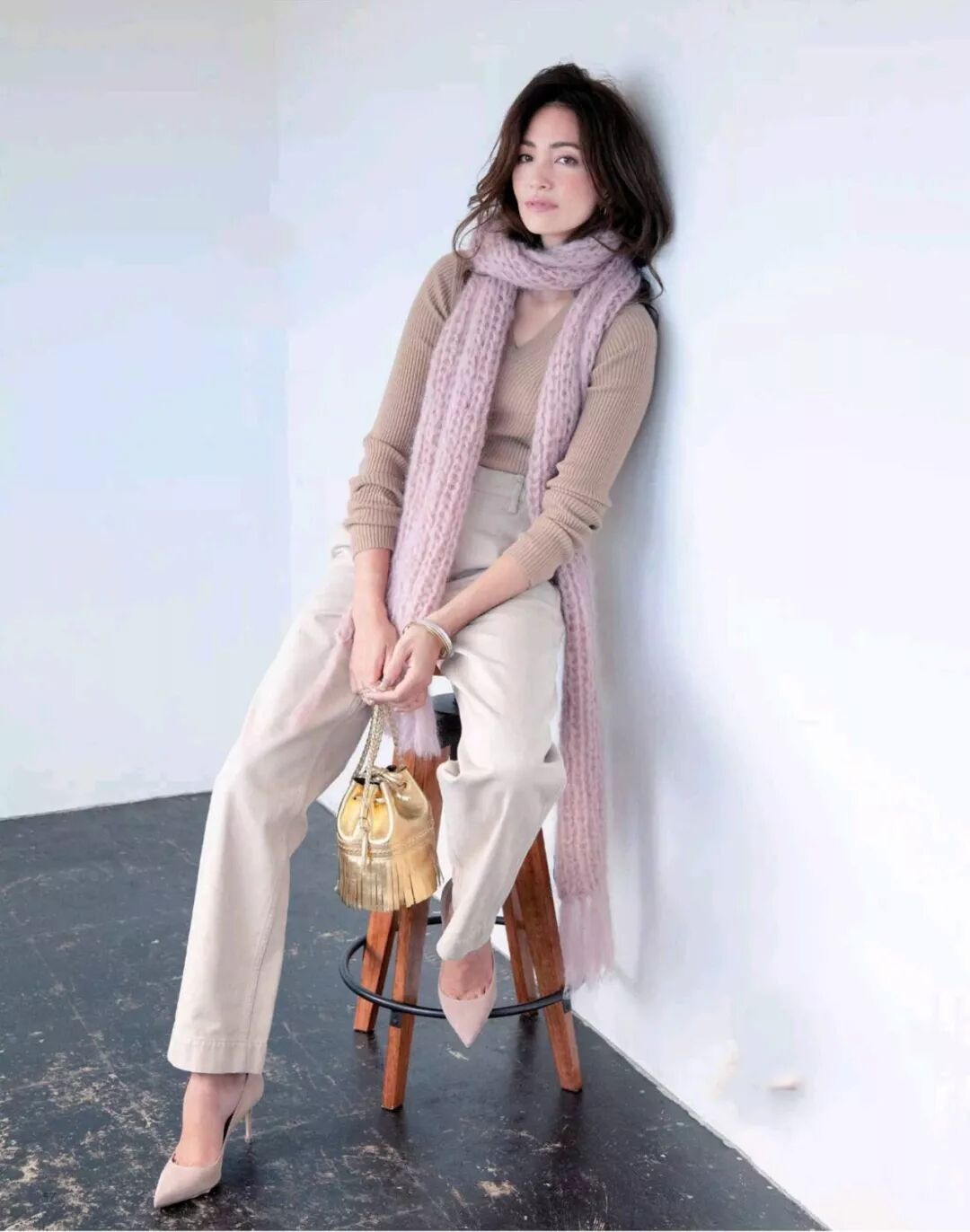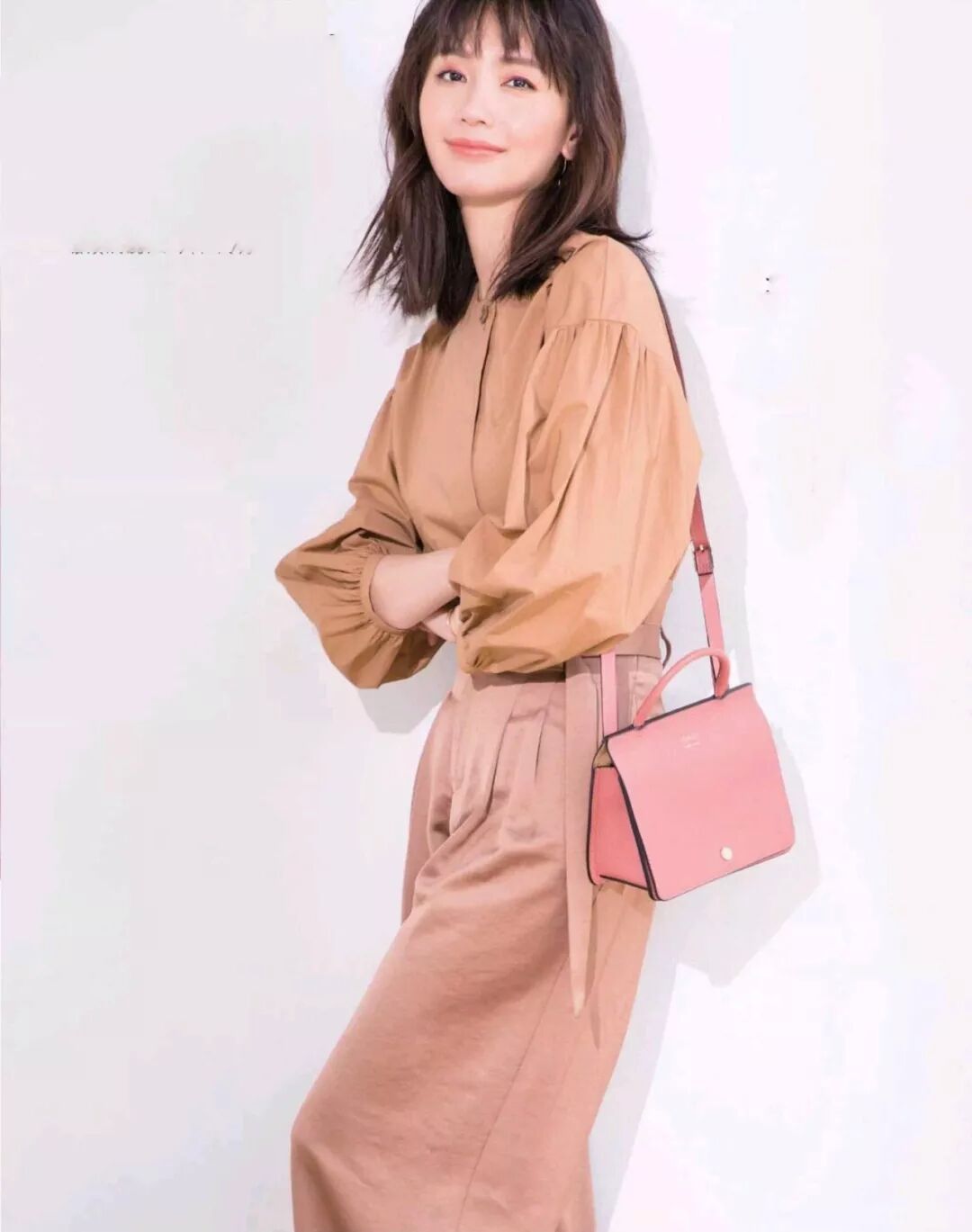 ▲江疏影日本行的一組look也是用了同色系搭配,相當和諧的配色了。