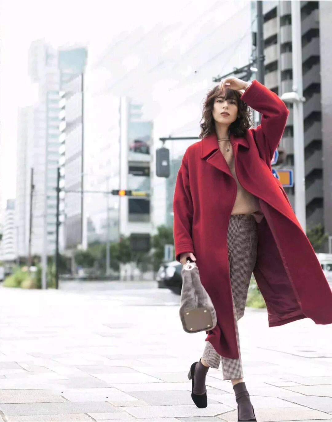 ▲暗紅的大衣也可以有一件,比較溫婉!